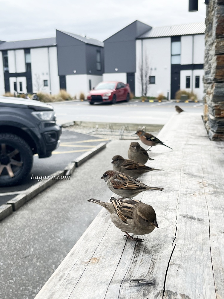 紐西蘭的小鳥都不怕人,丟個食物就全部飛過來搶食。