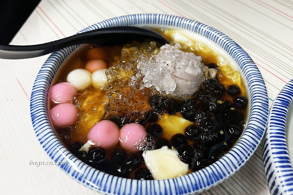 純白豆花+傳統黑糖+湯圓+粉圓+芋泥 $60